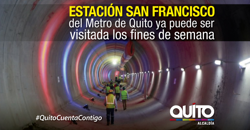La Empresa Pública Metropolitana Metro de Quito informa que a partir de enero de 2019, la estación San Francisco se incorpora al programa de visitas guiadas para la ciudadanía, que lleva a cabo Metro de Quito. De este modo los quiteños pueden visitar no solamente la estación La Alameda en el centro norte de la ciudad, sino también la estación… Leer más »Quiteños podrán visitar la estación San Francisco