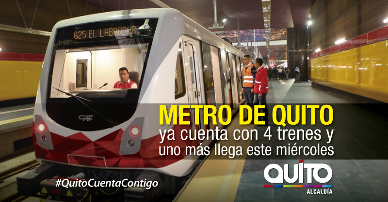 La Empresa Pública Metropolitana Metro de Quito informa a la ciudadanía que dos nuevos trenes del Metro de Quito llegaron a la ciudad, procedentes de España. Llegaron desde el puerto de Manta para ubicarse en Quitumbe, en el sector de Talleres y Cocheras, donde permanecen las cuatro unidades llegadas anteriormente. El tren que realizó el proceso de pruebas dinámicas en… Leer más »Siete trenes del Metro de Quito ya están en la ciudad