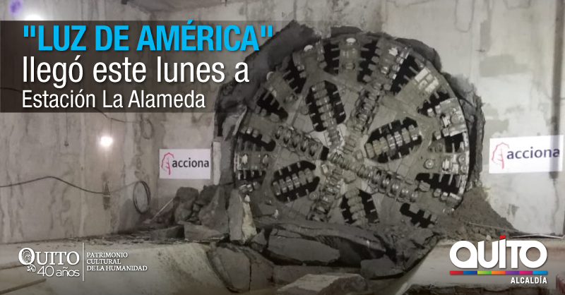 La Empresa Pública Metropolitana Metro de Quito (EPMMQ) comunica a la ciudadanía que el día lunes 27 de agosto, a las 15h00, la tuneladora “Luz de América” llegó a la Estación La Alameda, última en su recorrido.