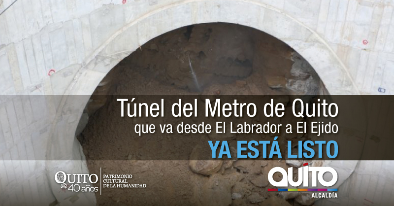 Al momento la Línea Uno del Metro de Quito muestra un avance físico del 73% con 75 frentes de obra abiertos. El porcentaje de avance del túnel es del 94%; están concluidas en su obra física 13 de las 15 estaciones y en 30 días la tuneladora Luz de América, que ya cruzó la estación San Francisco, llegará a la estación La Alameda y se dirigirá al pozo de extracción de El Arbolito donde será desarmada y extraída, completando así el 100% del túnel del Metro de Quito que unirá las estaciones de Quitumbe y El Labrador.